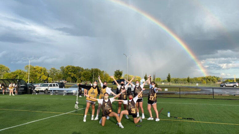 The women’s lacrosse team has been practicing and staying in shape. Ashley Burns, pictured with her teammates,